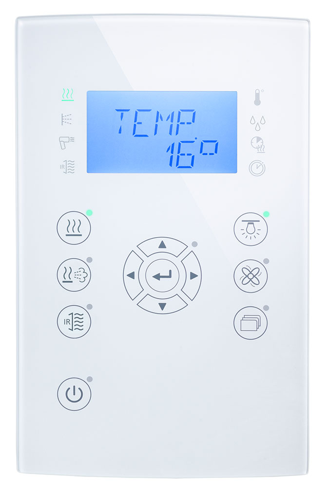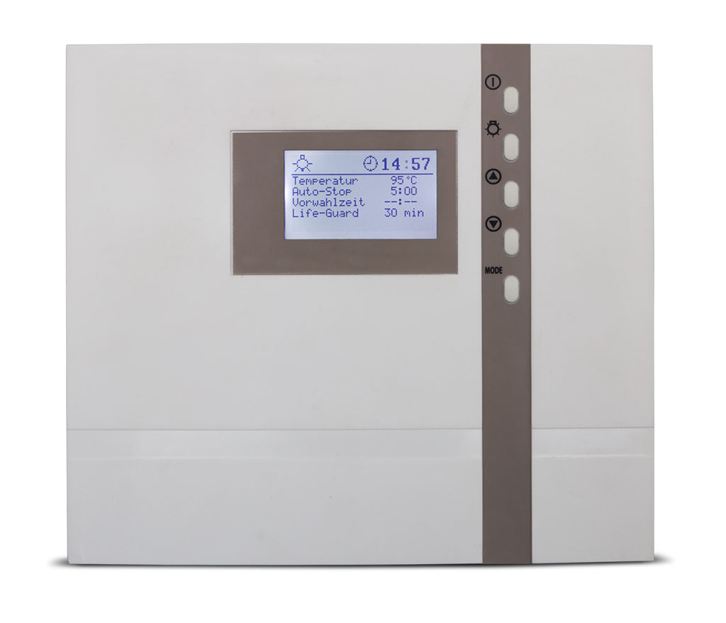 Programmierbare Steuerungen, auch mit Farblichtmodul, und umfangreiches Zubehör garantieren eine Ihren Bedürfnissen optimal angepasste Sauna.